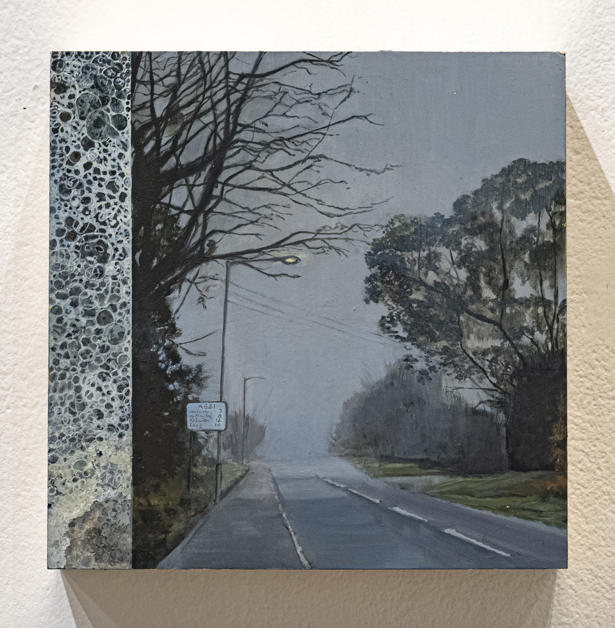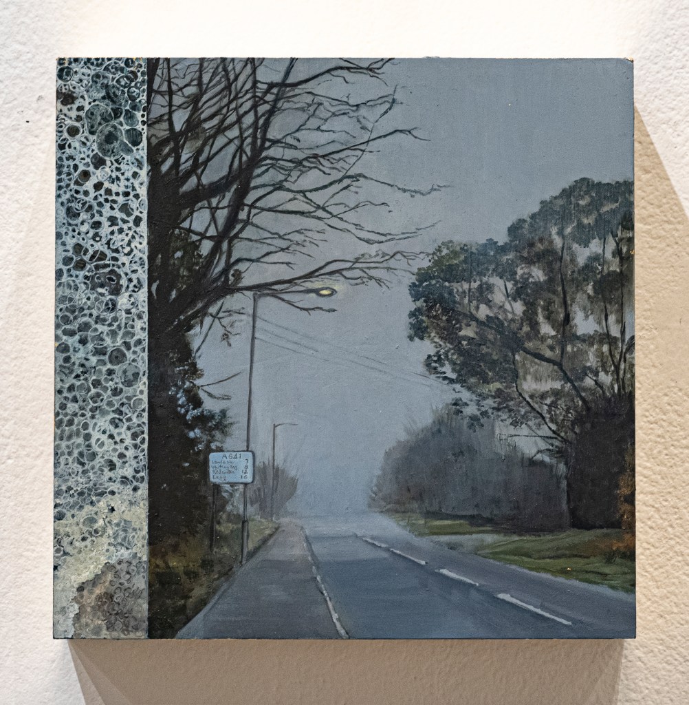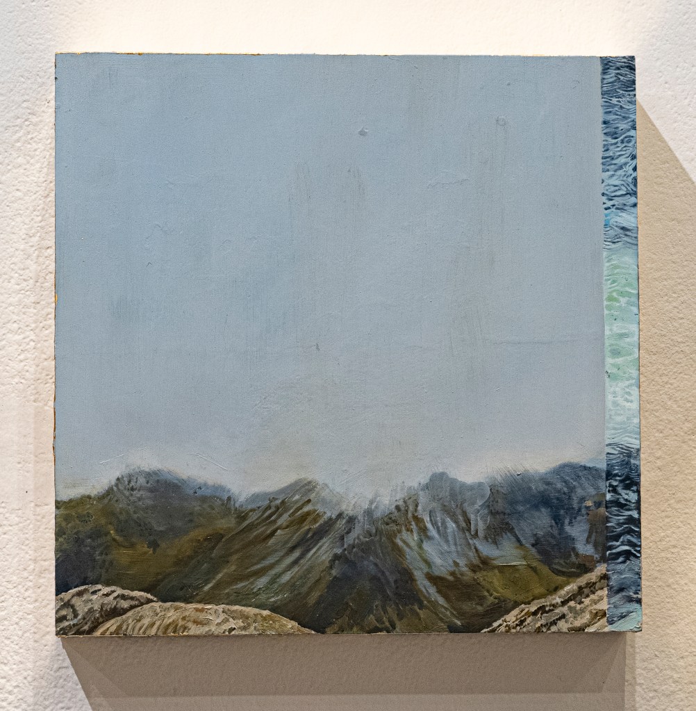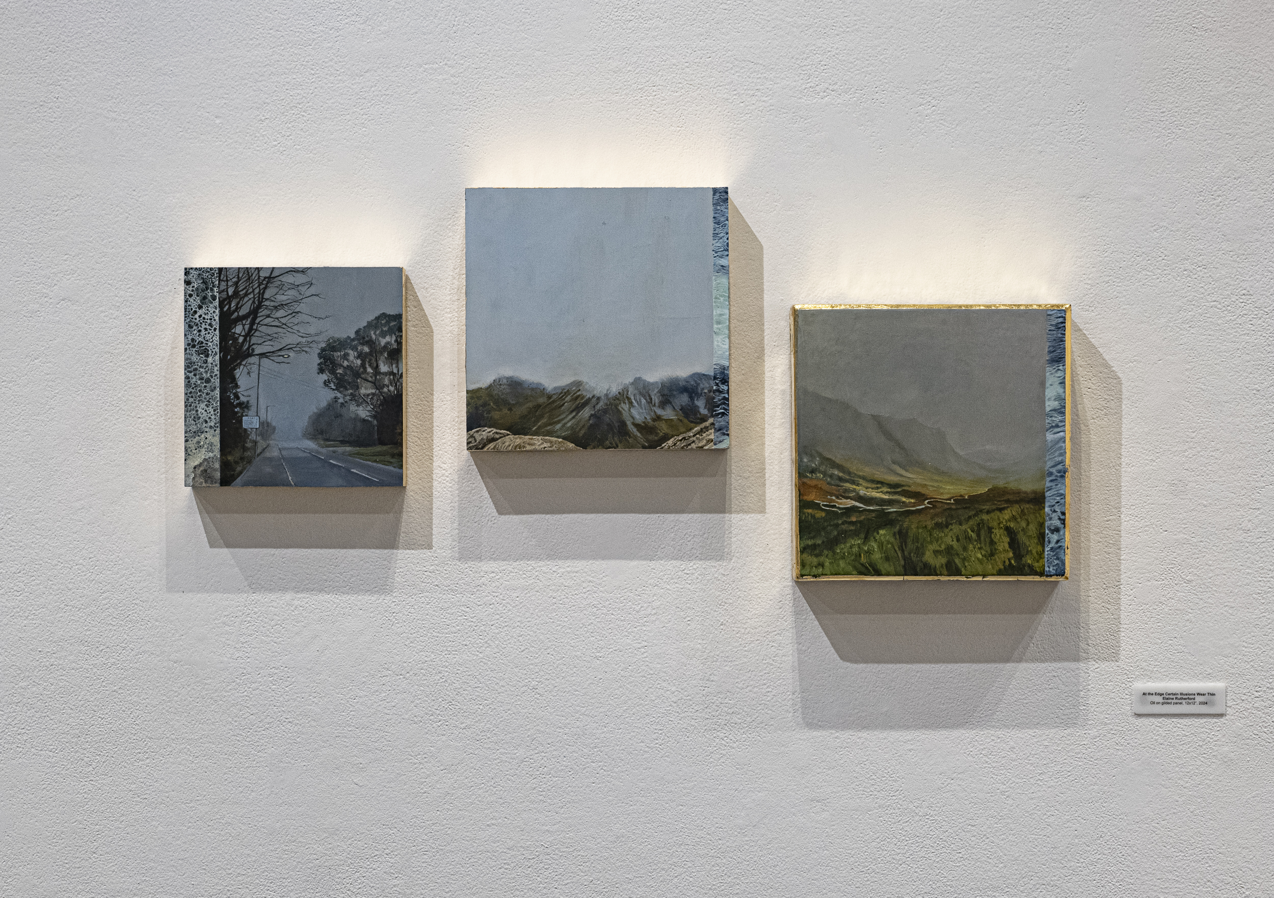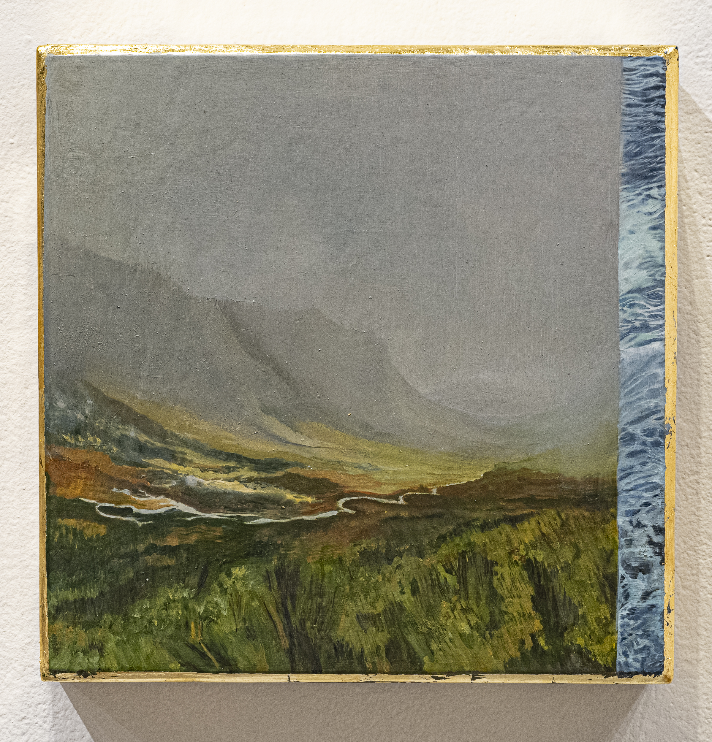 “At the Edge Certain Illusions Wear Thin, all paintings 12×12” oil and gold leaf on panel