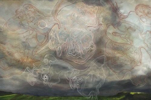 Turbulence, oil and embroidery thread on canvas, 6ftx8ft